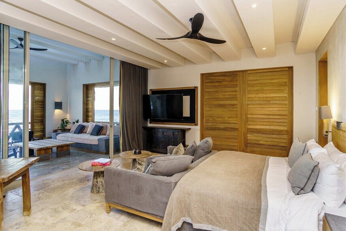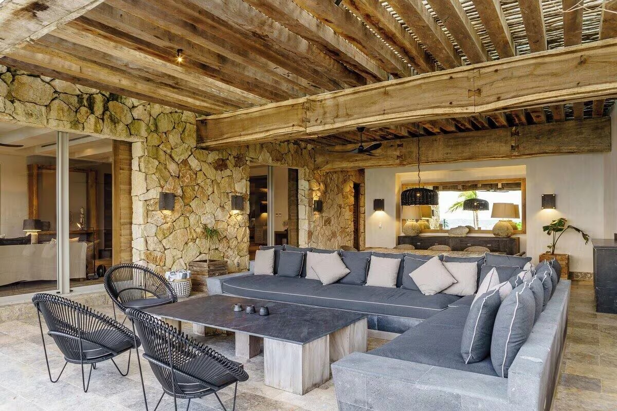 It has 7 spacious suites, each with its own private bathroom, ideal for offering maximum comfort and privacy to guests. The social spaces—such as the living room, dining room, and kitchen—open to the outdoors through large windows that fill the house with natural light and allow for spectacular views of the Caribbean Sea. On the third level, a gazebo with a barbecue area provides the perfect setting for contemplating the sunsets and creating unforgettable moments.