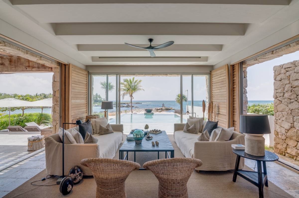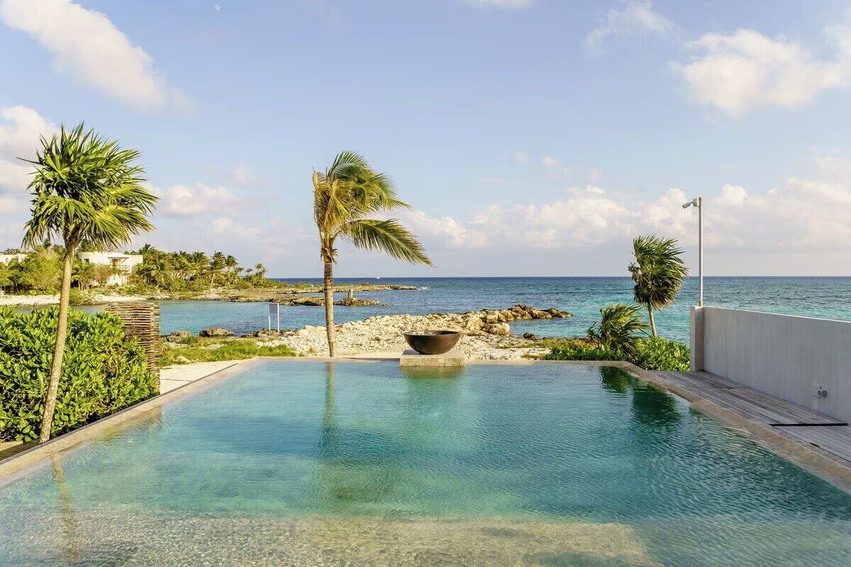 Discover a truly exceptional residence in the Riviera Maya's most exclusive community. This luxury beachfront villa, located on a private bay, offers an unparalleled natural setting with direct access to a white-sand beach, a calm lagoon, a natural cenote, and even an authentic Mayan temple on the property. A unique experience that combines privacy, nature, and high-end architecture.
