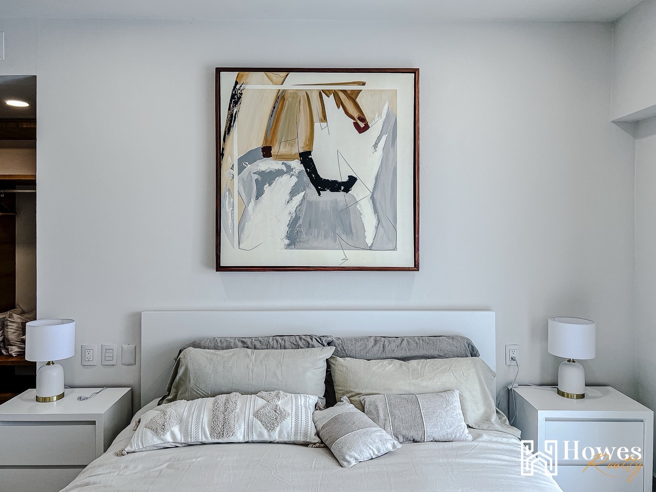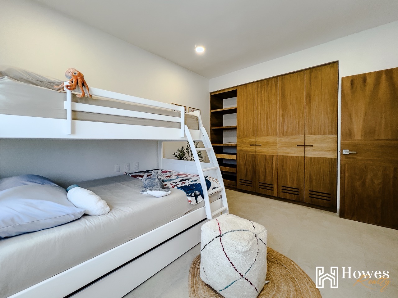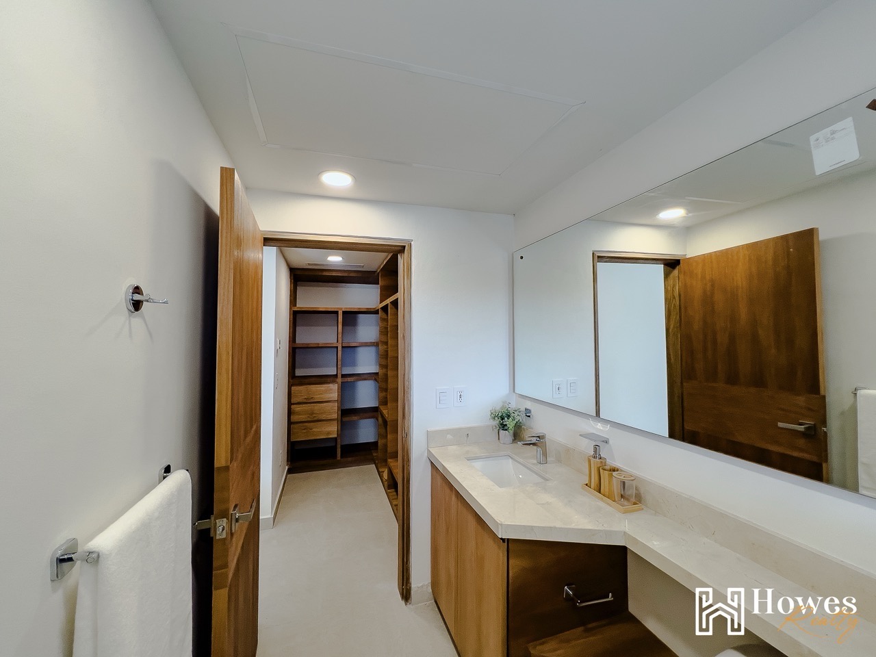 The master bedroom includes a walk-in closet and direct access to the terrace with private stairs leading to the pool and social areas.