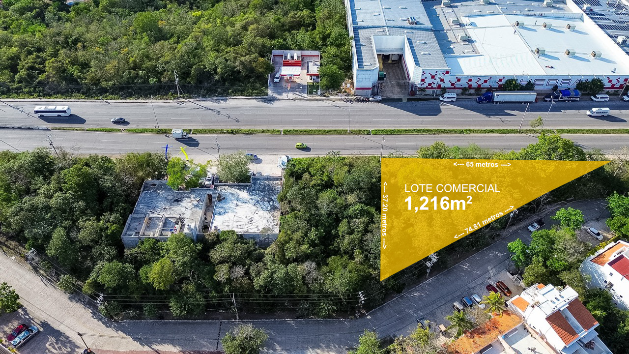 Con una superficie total de 1,216 m², el terreno ofrece amplias posibilidades para la construcción de una plaza comercial, locales, restaurantes, tiendas, bodegas o franquicias. Cuenta con 65 metros lineales de frente sobre la carretera, una profundidad de 37.32 metros y un frente adicional hacia la calle Bahía Chemuyil, lo que le brinda una presencia destacada dentro de la zona, aunque sin acceso por esta vía. Su uso de suelo comercial lo convierte en una opción versátil para distintos tipos de negocio.