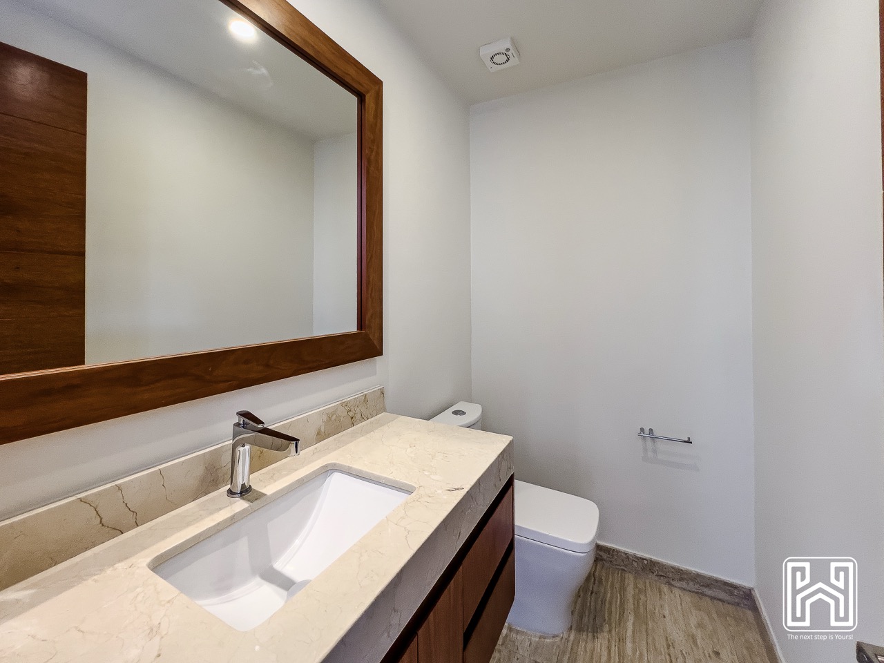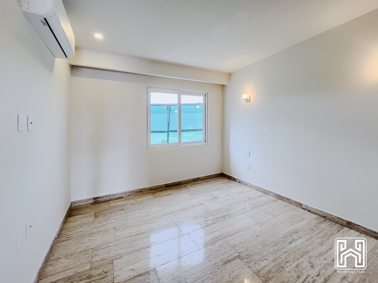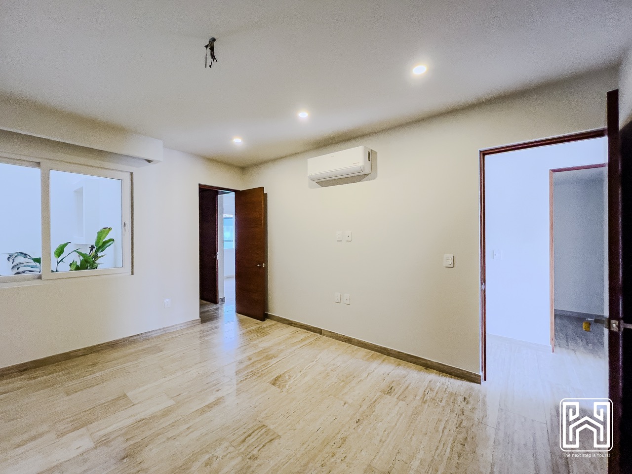 El departamento cuenta con 3 recámaras muy amplias y 3.5 baños, distribuidos en un diseño moderno y funcional. La recámara principal dispone de walk-in closet y baño completo, brindando comodidad y privacidad. La cocina está completamente equipada con funcionamiento eléctrico y se integra armoniosamente al área social. Además, cuenta con cuarto de lavandería, aires acondicionados en todas las áreas y estacionamiento asignado.