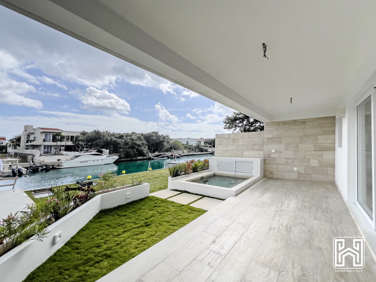 Desde su amplia terraza privada con jacuzzi y área de jardín podrás disfrutar de vista directa al canal y acceso inmediato tanto a la alberca principal tipo infinity como al área de muelles. La ubicación es excepcional, ya que se encuentra frente a uno de los canales más amplios de la marina, ideal para embarcaciones de mayor tamaño, permitiéndote vivir rodeado de agua, brisa y tranquilidad.