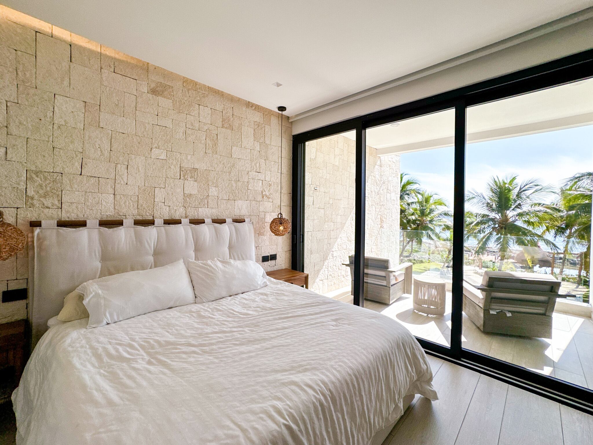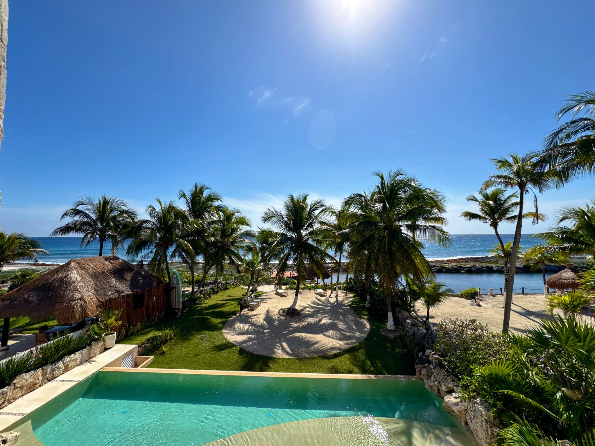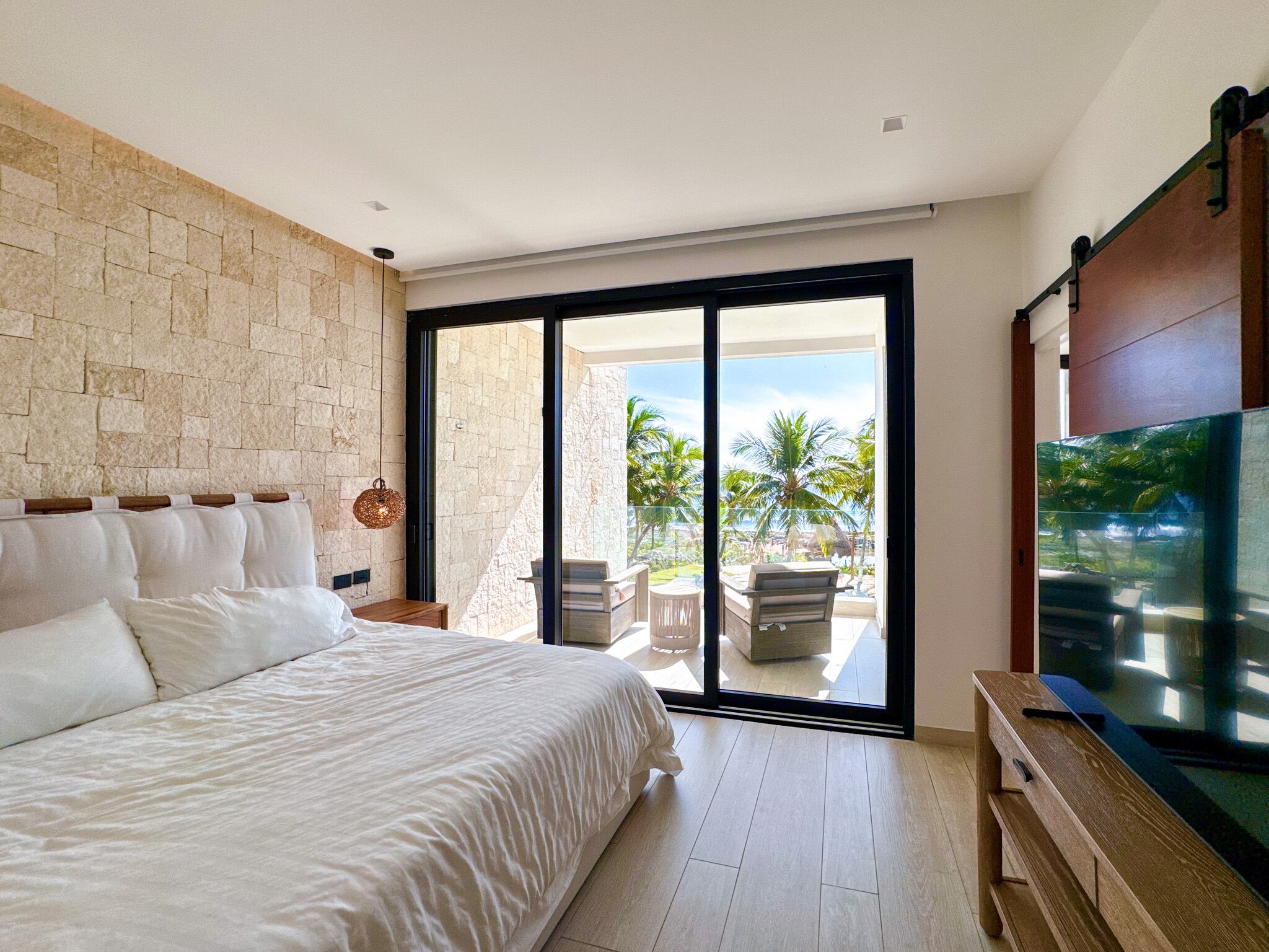 Condominio frente al mar de dos niveles con vistas al Caribe y la laguna, acceso directo a la playa, muelle privado y entrada a la laguna ideal para paddle board y snorkel, elevador exterior y escalera interior, recámara principal con terraza privada y baño tipo spa, cocina equipada con tecnología Miele y acabados de alta gama, cochera techada con estacionamiento asignado, dentro de un edificio boutique de solo cuatro residencias concluido en 2023.