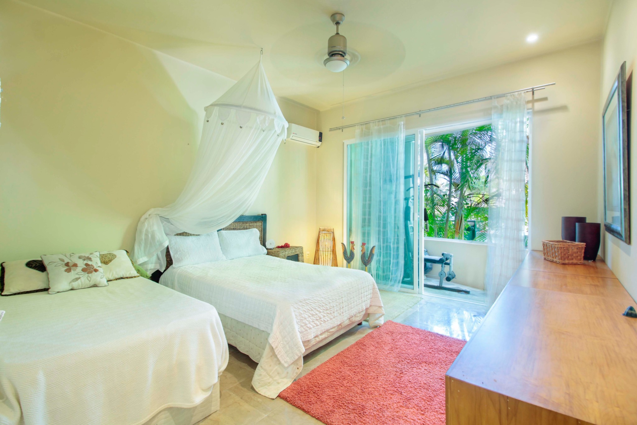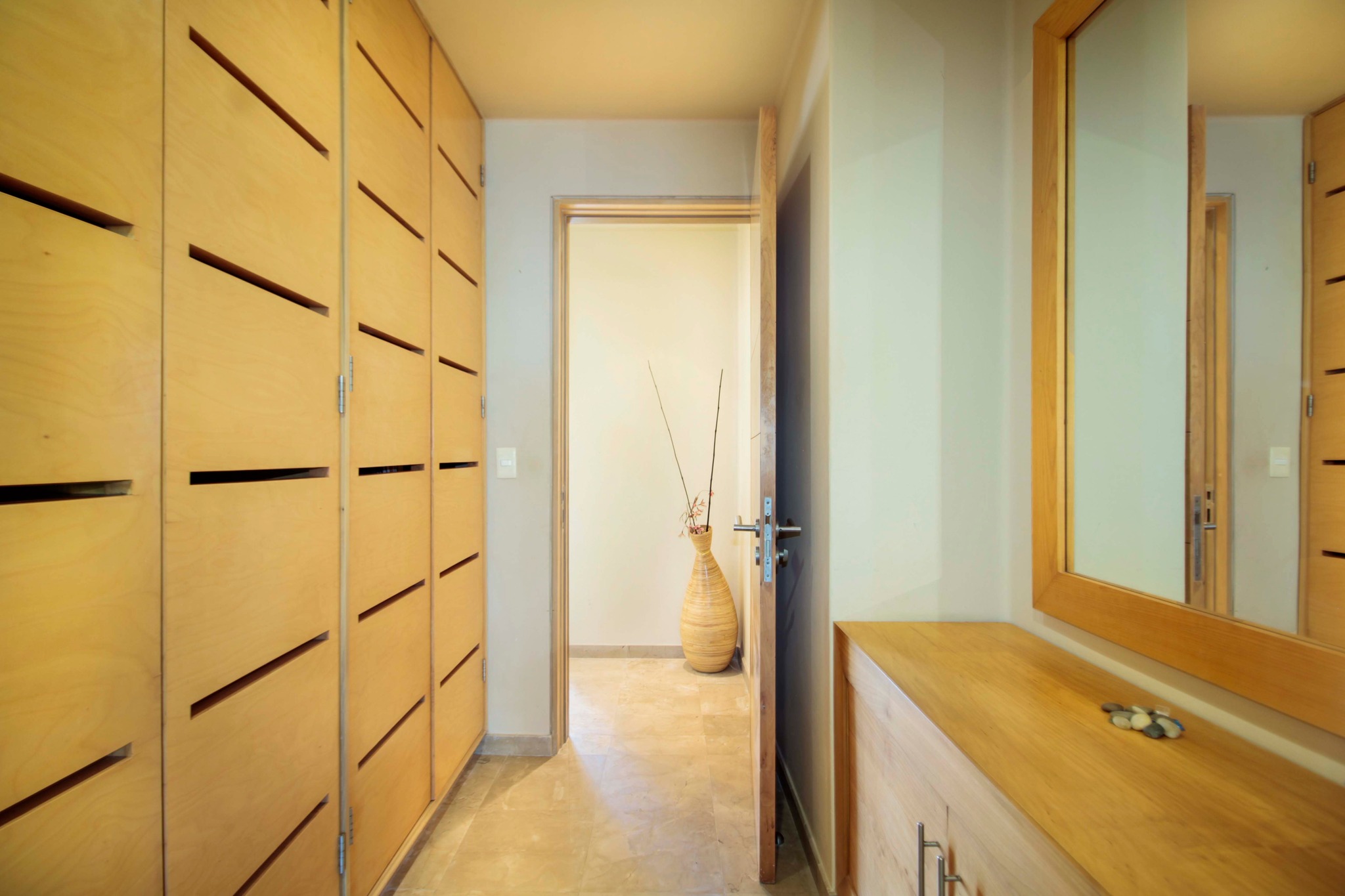 El interior está diseñado para el máximo confort y estilo. Cuenta con dos suites, cada una con su propio baño completo, clóset y una terraza privada, garantizando privacidad y espacio para todos. La sala, el comedor y la cocina están completamente equipados, listos para que te mudes y empieces a disfrutar. Además, el departamento dispone de cuatro terrazas cubiertas adicionales, perfectas para relajarse y disfrutar del clima caribeño en cualquier momento del día.