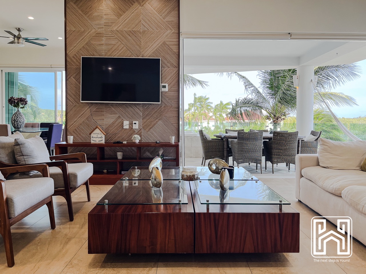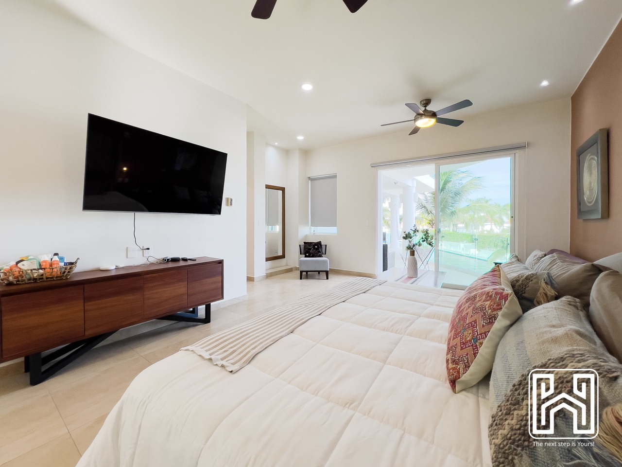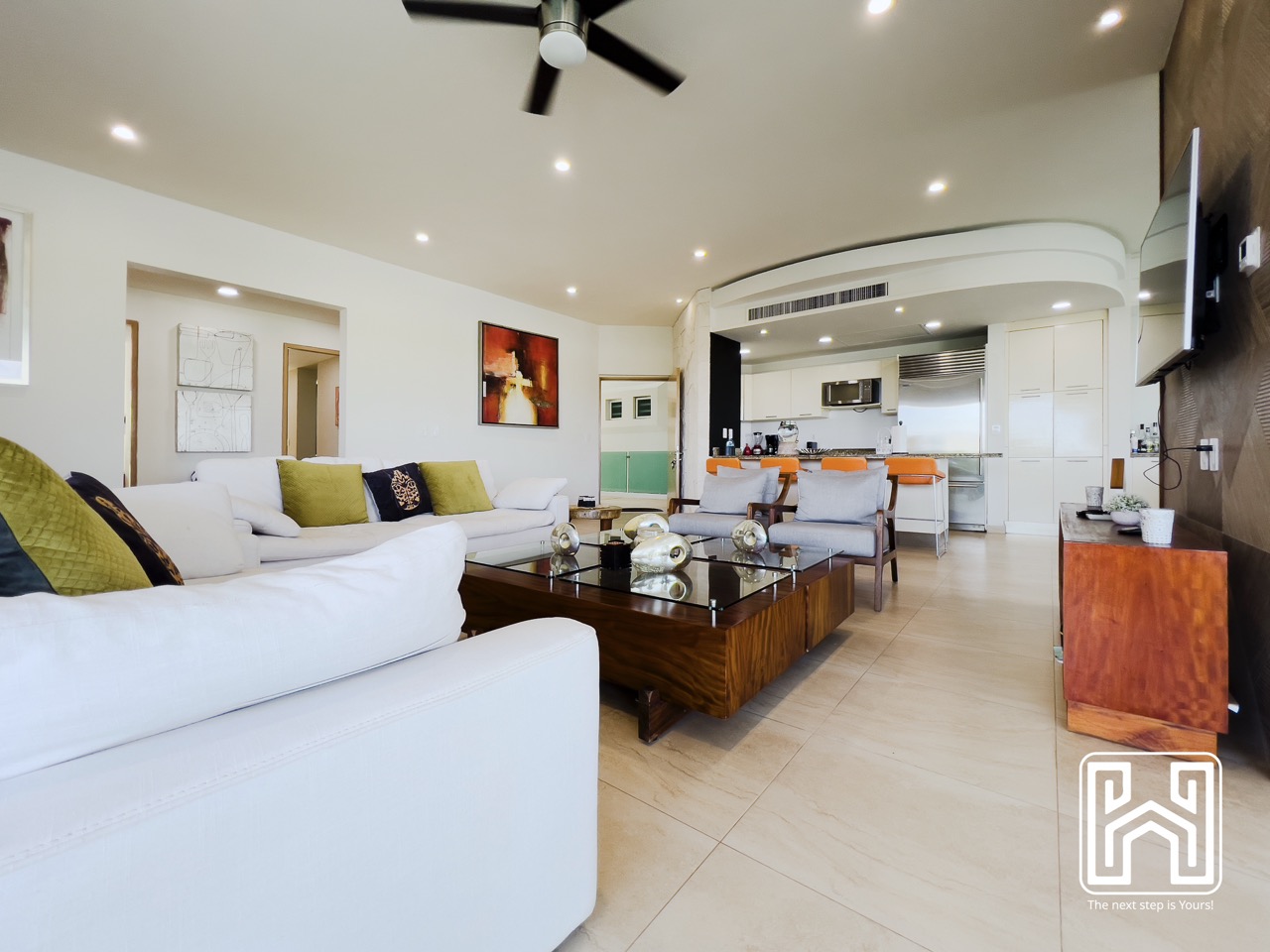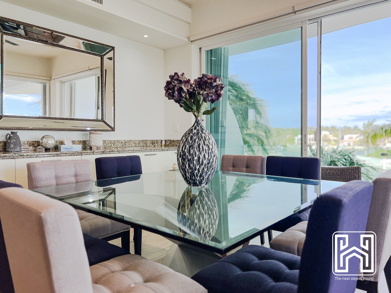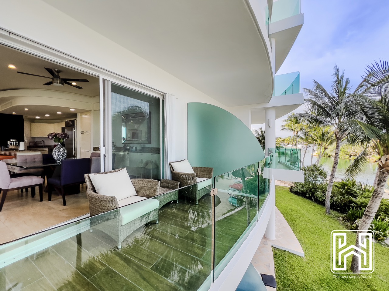 Con una distribución pensada para el confort y el estilo, la propiedad cuenta con tres recámaras, tres baños completos y un medio baño, además de generosas terrazas privadas con vistas panorámicas hacia el canal y el mar Caribe. El jacuzzi en la terraza brinda un espacio íntimo para relajarse bajo las estrellas, mientras que la cocina de diseño contemporáneo, equipada con electrodomésticos de alta gama y barra en península, es ideal tanto para la vida diaria como para recibir invitados.