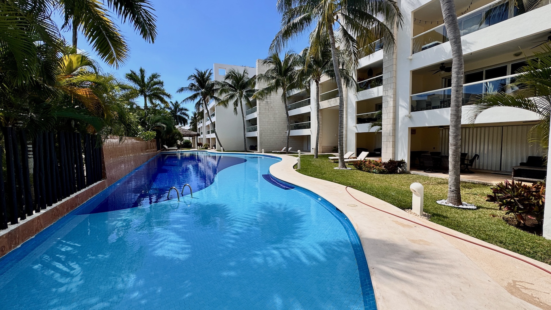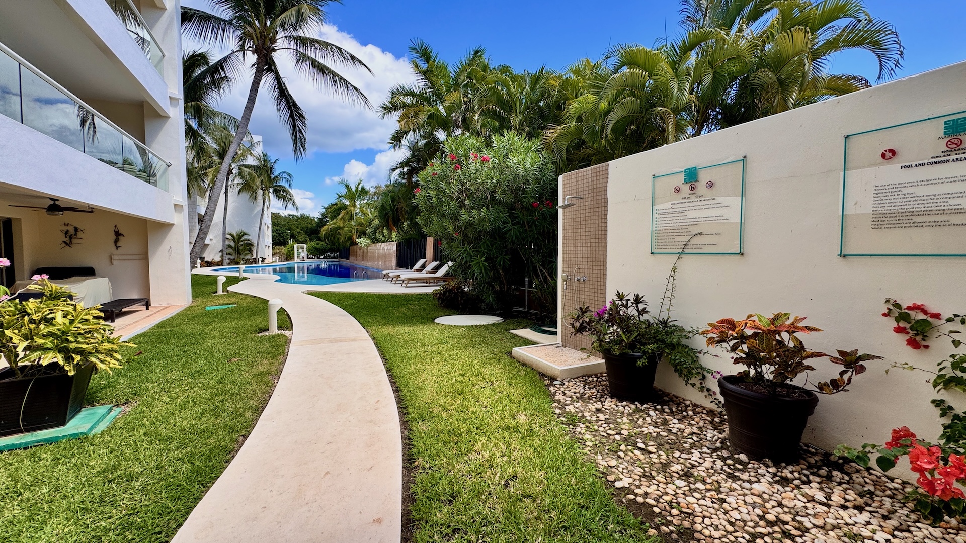 Marina Mia es un desarrollo de baja densidad que ofrece un entorno tranquilo y bien cuidado, con dos amplias albercas rodeadas de exuberantes jardines tropicales. El edificio cuenta con elevador, estacionamiento asignado y seguridad 24/7, brindando comodidad y tranquilidad a sus residentes. Construido en 2010, se mantiene en excelentes condiciones y listo para habitar.